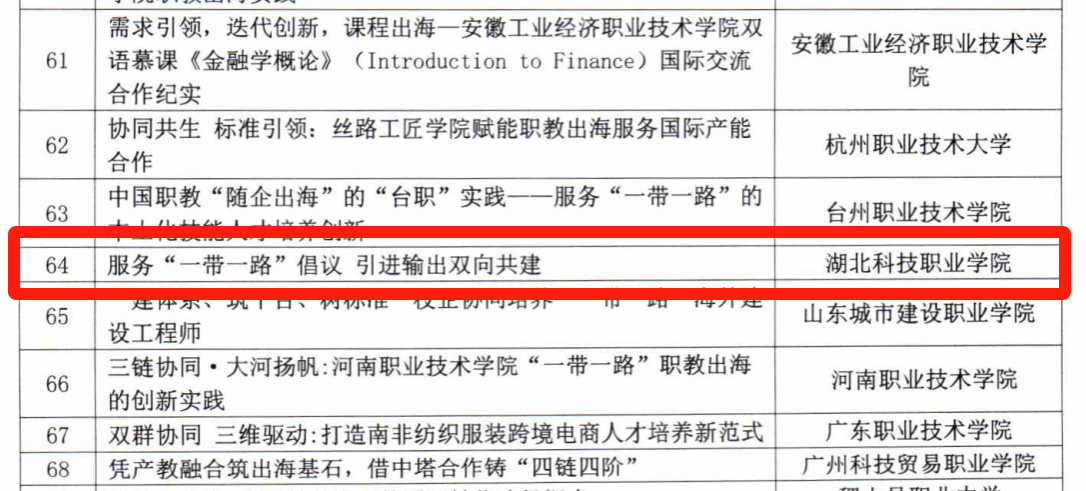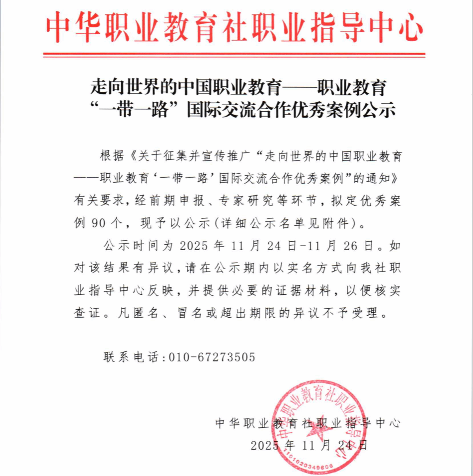 此次入选国家级“优秀案例”,既是对我校主动服务国家战略、持续推进职业教育国际化的充分肯定,也充分彰显了我校在职业教育国际化领域中的创新探索与实践成果。站在新起点,我校将以此为契机,全面提升职业教育“走出去”的质量与影响力,为服务“一带一路”建设与促进国际教育文化交流贡献更大力量。