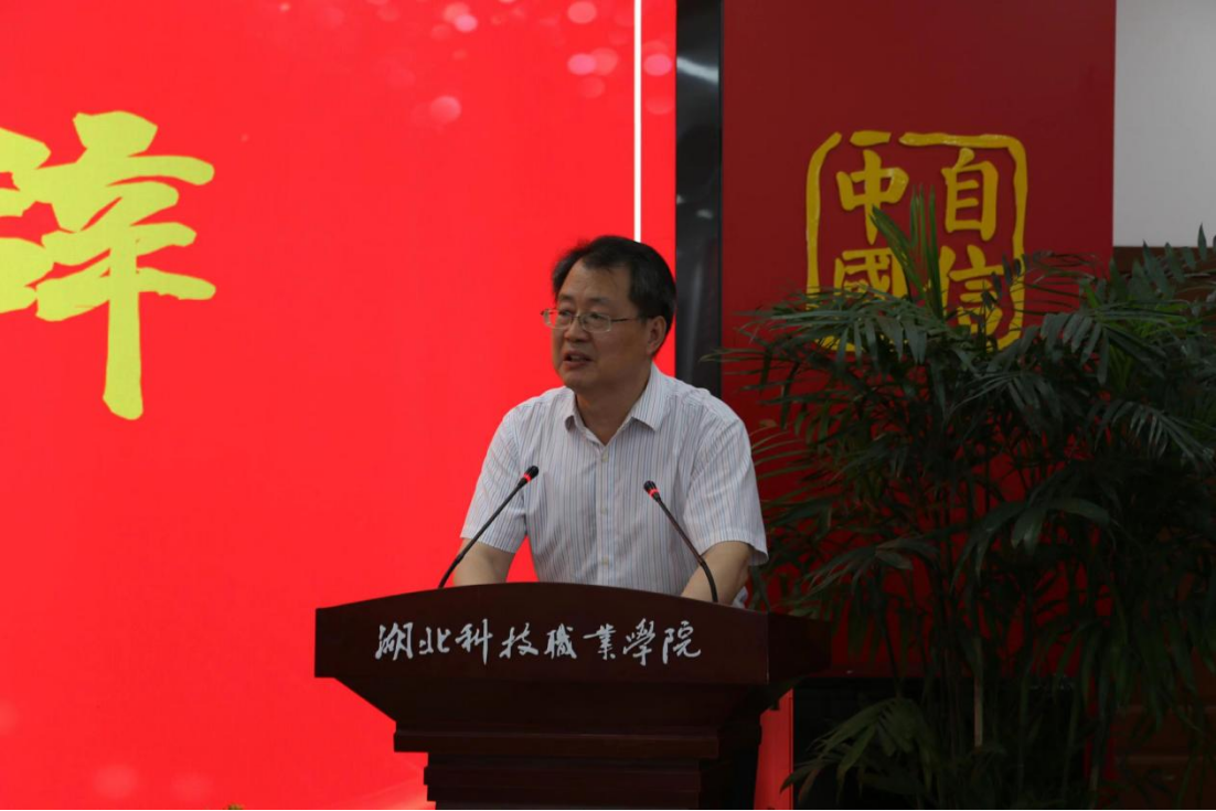 启动仪式现场,刘义代表学校致欢迎词,他介绍了近年来湖北科技职业学院的发展历程和建设方面取得的丰硕成果,并对产业学院的发展提出了进一步的希望和要求。