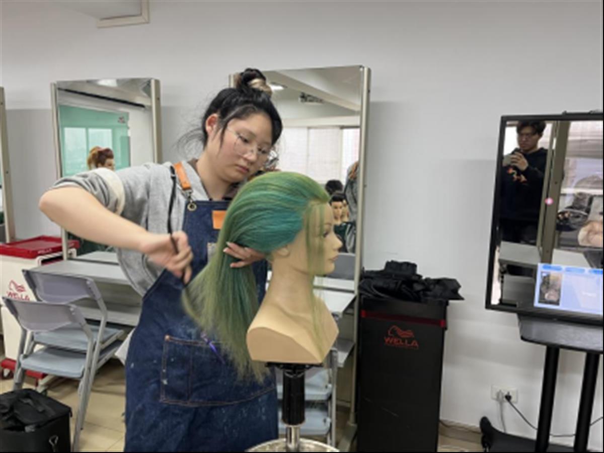 有了更好的平台,程亚林锚定技能大赛美发赛项目标,沉下心开始了日复一日的练习,备赛过程中耗费了上百个头模和数十把剪刀。寒暑假期间程亚林也没有休息,留在学校全心全力投入备赛。努力的汗水终将浇灌出丰收的果实,程亚林逐渐在各大技能大赛中崭露头角。在今年湖北省乡村振兴职业技能大赛美发赛项中,她凭借优异的表现拔得头筹,以第一名的成绩代表湖北省参加第二届全国乡村振兴职业技能大赛,并取得了全国第十的好成绩。每日无休地练习,让她在美发领域日益精进,也用刻苦、耐心、专注诠释了“工匠精神”。