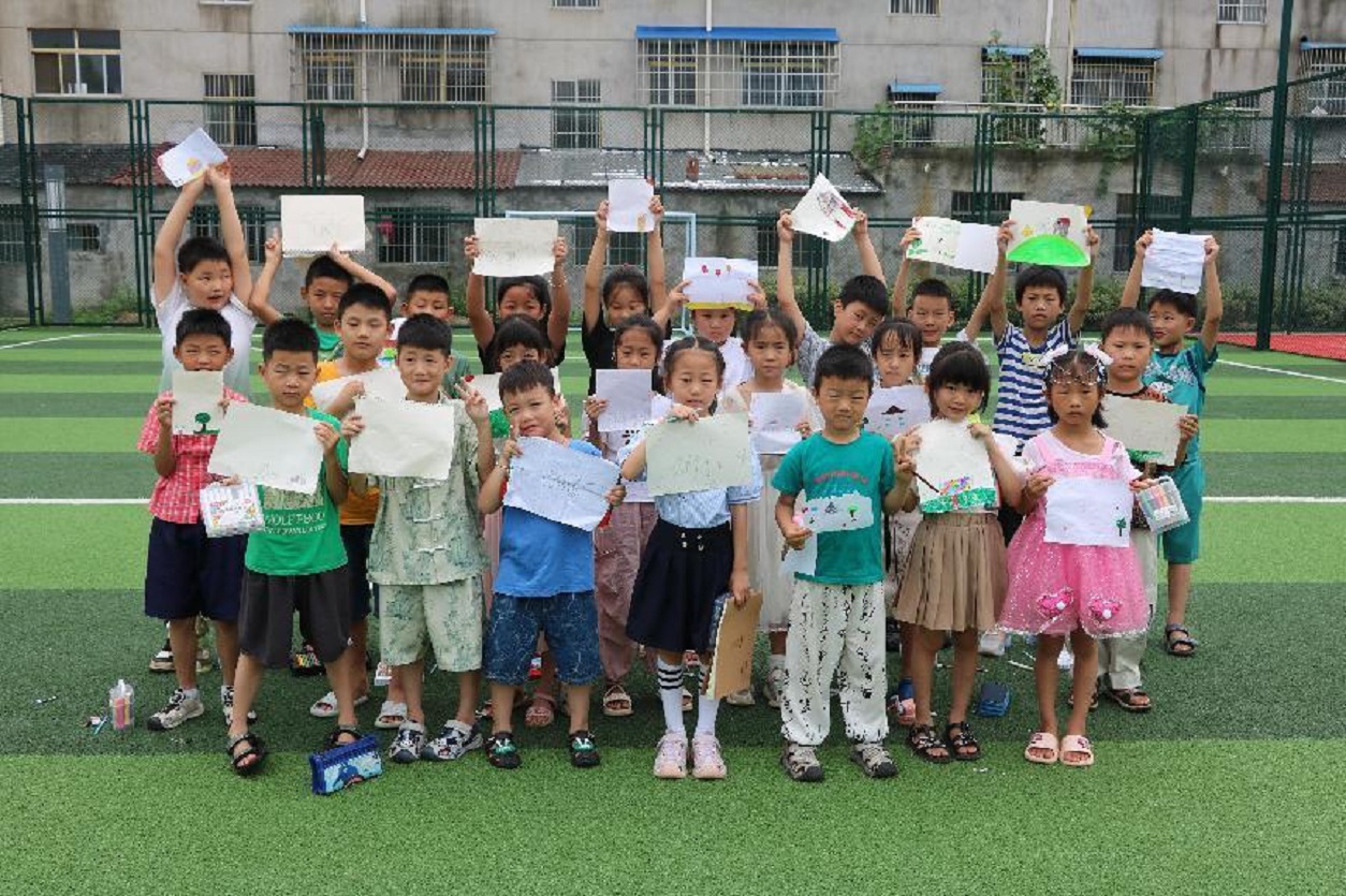 (图为小朋友们展示绘画成果)