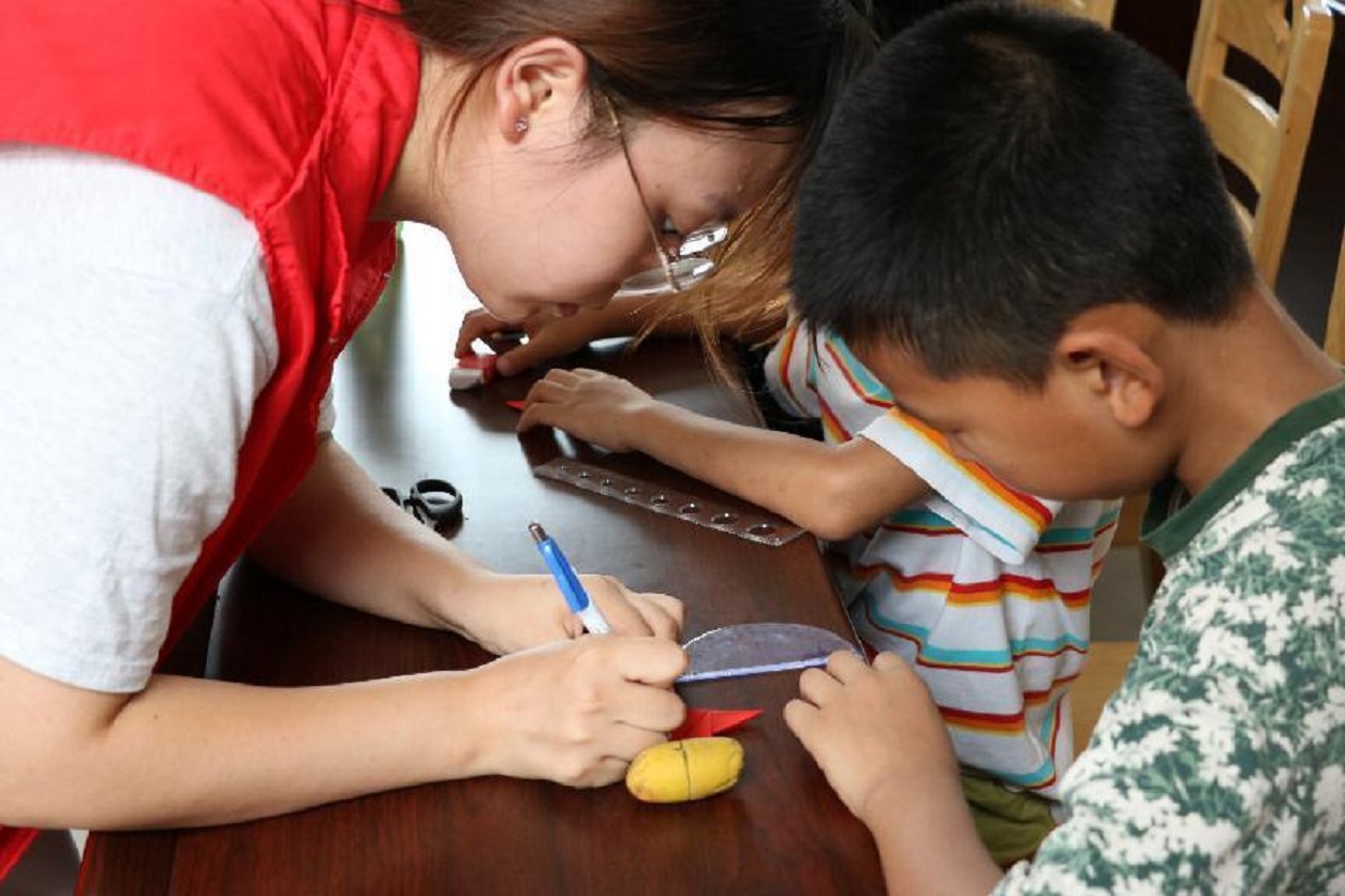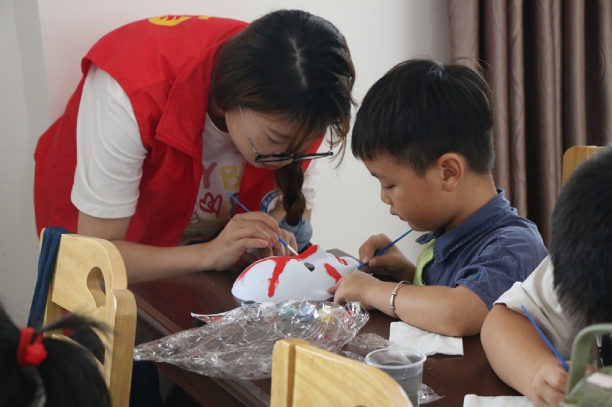 (图为头雁实践队成员帮助小朋友绘画)