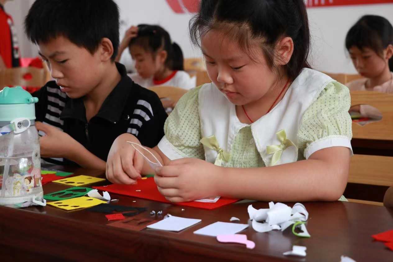 为了进一步培养小朋友们的爱国情怀,头雁实践队成员通过不织布画——“我爱祖国”手工活动,激发小朋友们无限的创造力。在头雁实践队队员的指导下,小朋友们将一片片不织布拼接成自己心中的祖国形象。在制作过程中,小朋友们不仅锻炼了手眼协调能力和耐心细致的品质,更深刻体会到了祖国的伟大和美好。
