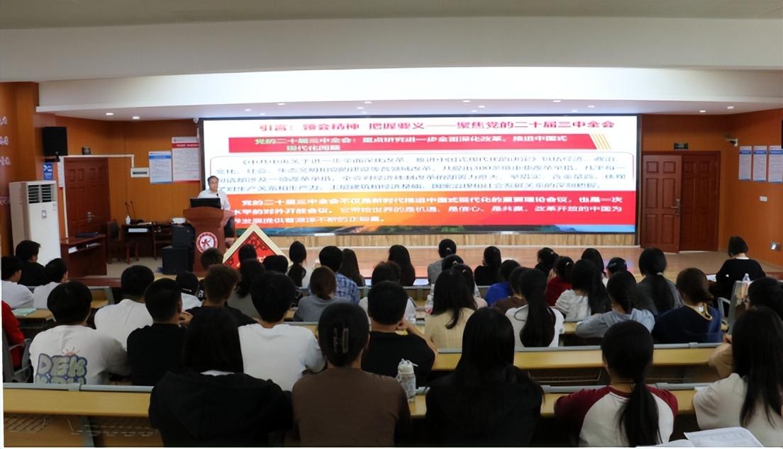为深入学习贯彻党的二十届三中全会精神,着力用党的创新理论武装思想、凝聚力量,引领广大青年学生自觉把思想和行动统一到党中央决策部署上来。10月12日上午,湖北科技职业学院党委书记钟毓宁教授以《加快发展新质生产力》为主题,在思政讲堂为人工智能学院2024级计算机专业学生讲授了一堂生动且精彩的主题思政课。