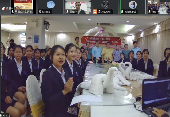 11月,学校工商管理学院开启了一场跨越国界的知识传递,面向泰国孔敬职业学院酒店管理专业70名学生开展了国家级在线精品课程《邮轮客舱服务与管理》的课程输出教学工作。14日,工商管理学院骨干教师王红玲通过线上平台,全方位展示了学校邮轮旅游实训中心的先进实训条件,详细讲解邮轮客舱部组织架构及主要对客服务项目,让泰国学生深入了解行业精髓。21日,工商管理学院院长苏枫教授在泰国学生的期待中深入介绍国际邮轮乘务管理专业及核心课程,教授课程实操技巧,并耐心解答泰国师生的各类疑问,为两国师生搭建起沟通的桥梁。泰国学生热情高涨,分享专业课程中学习的“毛巾花”折叠技能,中泰师生在热烈而融洽的氛围中相互学习、交流互鉴。经申报,湖北科技职业学院《邮轮客舱服务与管理》课程标准成功获得泰国ABA行业协会的认证。