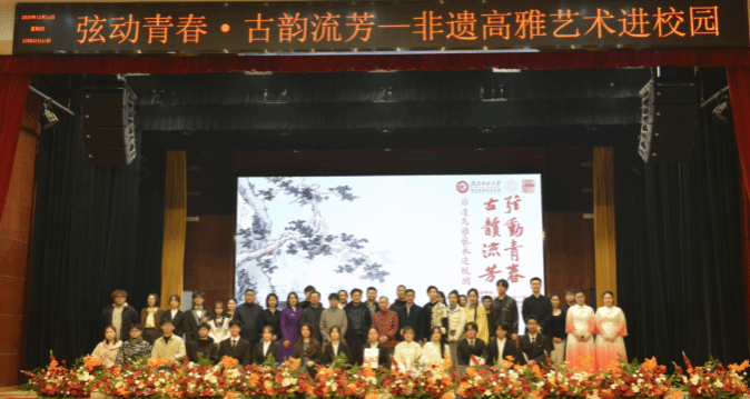 12月11日晚,“弦动青春·古韵流芳——非遗高雅艺术进校园”专场展演在湖北科技职业学院关山校区报告厅精彩上演。本次活动由学工部(处)、团委、马克思主义学院、机电工程学院联合武汉琴台古琴文化艺术研究会共同主办,特邀两位区级非遗传承人现场演绎。