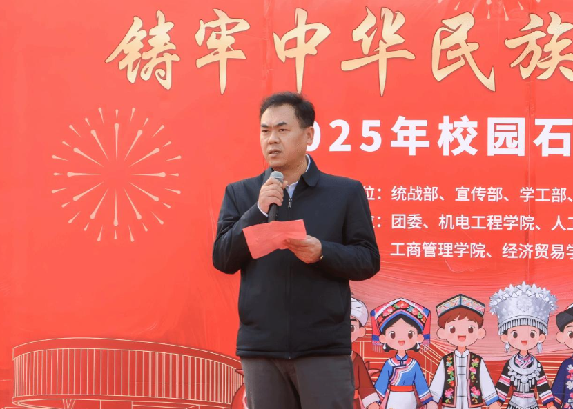 周得力在致辞中深情表示:“来到湖科,我们就是一家人!”他勉励同学们在日常学习生活中互相关心、彼此支持,像亲人一样真诚相待,并号召全校学生“争做铸牢中华民族共同体意识的坚定信仰者、争做中华优秀文化的积极传播者、争做民族团结进步的自觉践行者”。他表示,希望通过接下来一系列丰富多彩的文化活动,进一步增进全校师生的文化认同,促进情感交融。