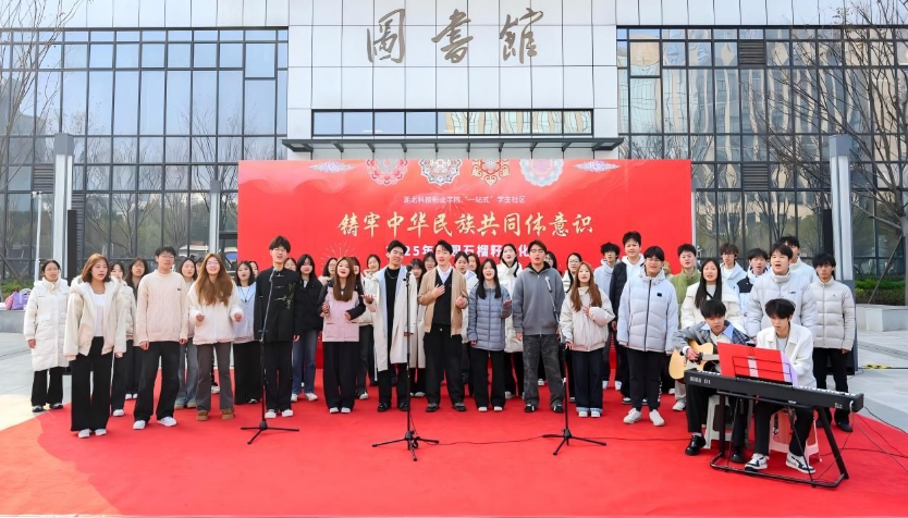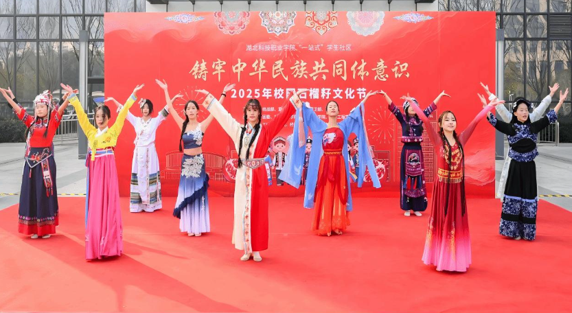 “太震撼了!我还是第一次见到有这么多同学自发排起长队参加一场校园活动,更没想到校领导会走进队伍和我们一起跳舞,是真正的一家人!”12月17日,湖北科技职业学院“铸牢中华民族共同体意识校园‘石榴籽’文化节”现场,方靖同学的话立即引起了周围同学的共鸣。随着《最炫民族风》的欢快旋律,党委副书记何平与身着各民族服饰的同学们手拉手共舞,不远处副校长周得力举着红彤彤的糖葫芦与学子亲切合影,温暖场景点燃全场热情,一场兼具视听盛宴与思政温度的文化盛会就此拉开帷幕。