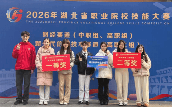1月16日,2026年湖北省职业院校技能大赛财经赛道圆满落幕,本次赛事由湖北省教育厅主办。经过激烈角逐,湖北科技职业学院经济贸易学院两支参赛队伍奋勇争先,凭借扎实的专业知识技能和出色的现场表现,从全省83支参赛队中脱颖而出,分别斩获一等奖、二等奖。