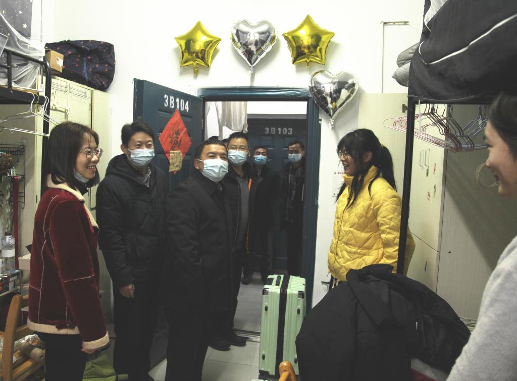 在走访慰问过程中,全体校领导与教职工们亲切交谈,为他们送上亲切慰问和新春祝福,对广大教职工在假期的辛勤付出表示肯定和感谢,详细了解了大家假期生活工作情况和新学期开学前的各项工作准备情况。刘义鼓励广大教职工要进一步增强责任意识,以更加饱满的热情、更加昂扬向上的精神状态、更加奋发有为的创业激情、更加严谨务实的工作作风投入到各项工作中,推动学校各项事业实现新突破、新跨越。钟毓宁强调,各部门、各单位要切实增强大局意识,始终绷紧疫情防控这根弦,抓实抓细疫情防控各项工作;要关注师生思想动态,加强人文关怀,丰富课余文化生活,及时回应解决师生诉求,用心用情做好各项服务保障等工作,努力营造团结和谐的校园环境。广大教职工对领导们的看望慰问和鞭策鼓励感到十分暖心,都纷纷表示将牢记嘱托,在接下来的工作中充分发挥主人翁的精神,踔厉奋发、勇毅前行,坚持为学校事业实现高质量发展贡献应有的担当与作为。