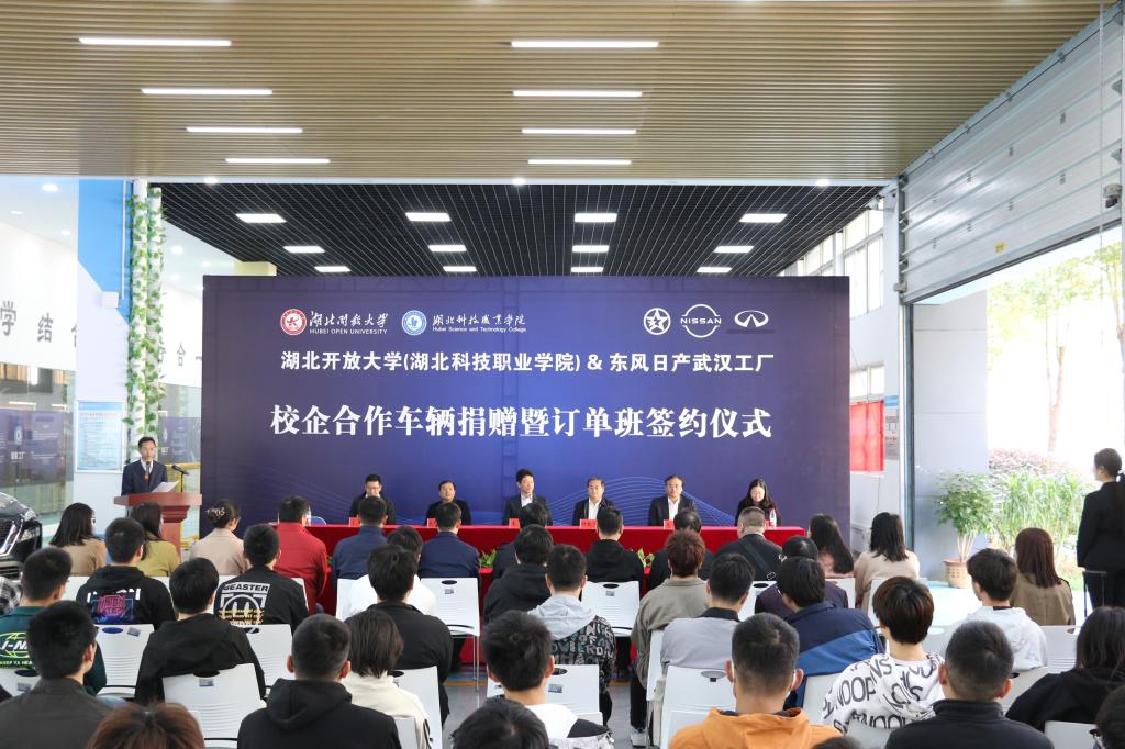 仪式上,王强、钟毓宁分别代表东风日产武汉工厂和学校进行了车辆交接。东风日产武汉工厂综合部部长卜波和机电工程学院院长於红梅签订了东风订单班合作协议。