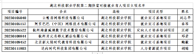 本讯网(通讯员 汤苗苗 文/图)4月6日,教育部高校学生司发布《关于公布第二期供需对接就业育人项目立项名单的通知》(教学司函〔2023〕6号),我校携手云帐房网络科技有限公司、 阿里巴巴(中国) 网络技术有限公司、杭州海康威视数字技术股份有限公司、杭州开元名都大酒店有限公司、北京新大陆时代教育科技有限公司、 达内时代科技集团有限公司申报的6个项目全部获批立项。
