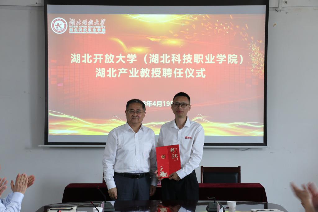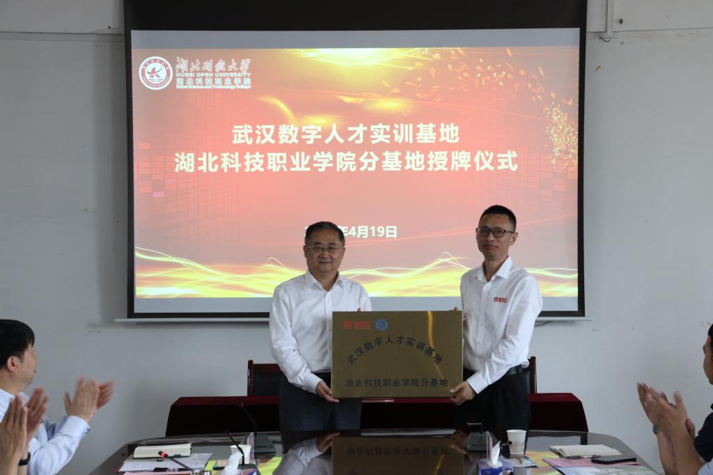 双方签订了湖北开放大学(湖北科技职业学院)·武汉云计算科技有限公司校企合作框架协议。钟收成为学校“武汉数字人才实训基地—湖北科技职业学院分基地”正式授牌。