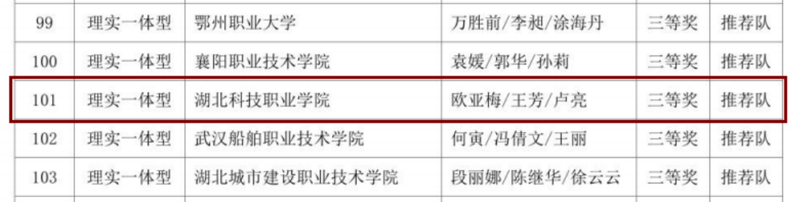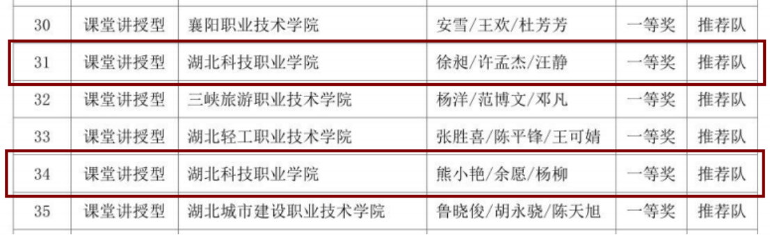 本次省赛共有425个教学团队,1285名教师参赛,共有59个教学团队获得一等奖,91个教学团队获得二等奖,136个教学团队获得三等奖。我校五支参赛团队全部获奖,获奖率达到100%,一等奖获奖率达到60%,是我校有史以来省赛最好成绩。