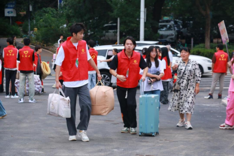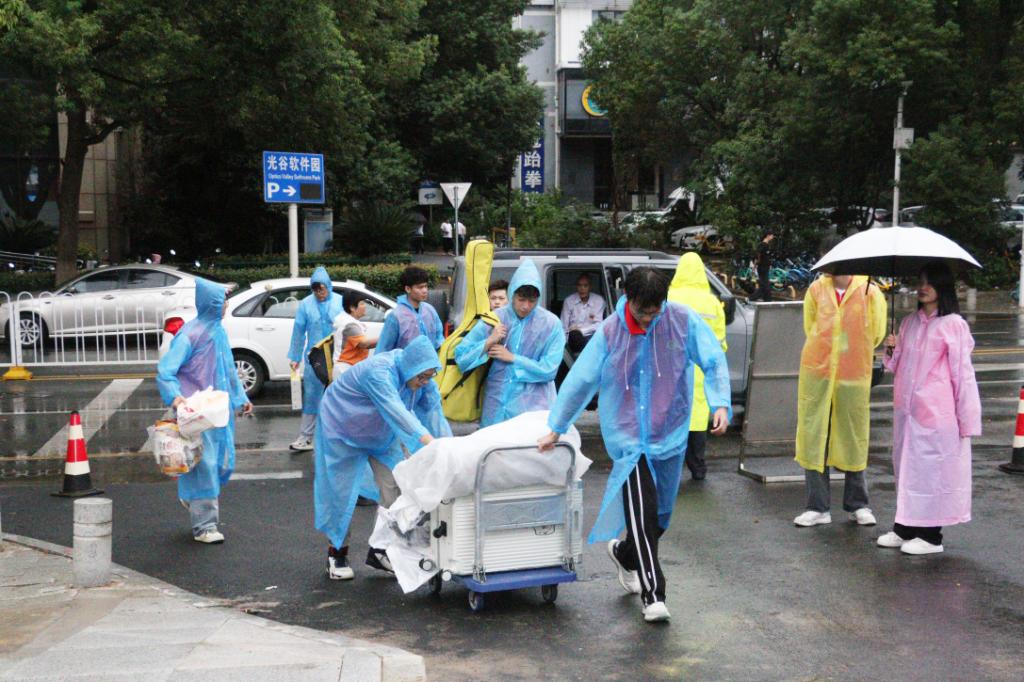 当迎新日与下雨天撞个满怀,却丝毫没有影响到志愿者们给新生提供热情周到、耐心细致的迎新服务,接送新生、搬运行李、指引流程、介绍校园、解答疑问,校园内处处都有“红马甲”们忙碌的身影。不顾瓢泼大雨,不管汗流浃背,志愿者们始终坚守在迎新工作的各个岗位,他们用最美的笑容和最周到的服务,向初入大学校园的新同学展现“热情湖科”,让他们真真切切地感受到家的温暖。