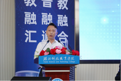 刘义代表湖北科技职业学院对参会的领导嘉宾、企业代表和兄弟院校的同仁表示热烈欢迎。他表示作为共同体的牵头单位,要积极发挥其桥梁纽带作用,加强与各兄弟院校、合作企业交流合作,积极探索新的人才培养合作模式和实践方式,共同做好产教融合共同体新文章,为培养优质的技术技能人才提供坚强保障,为增强产业核心竞争力、汇聚发展新动能提供有力支撑,为湖北建设全国构建新发展格局先行区贡献“共同体”力量。