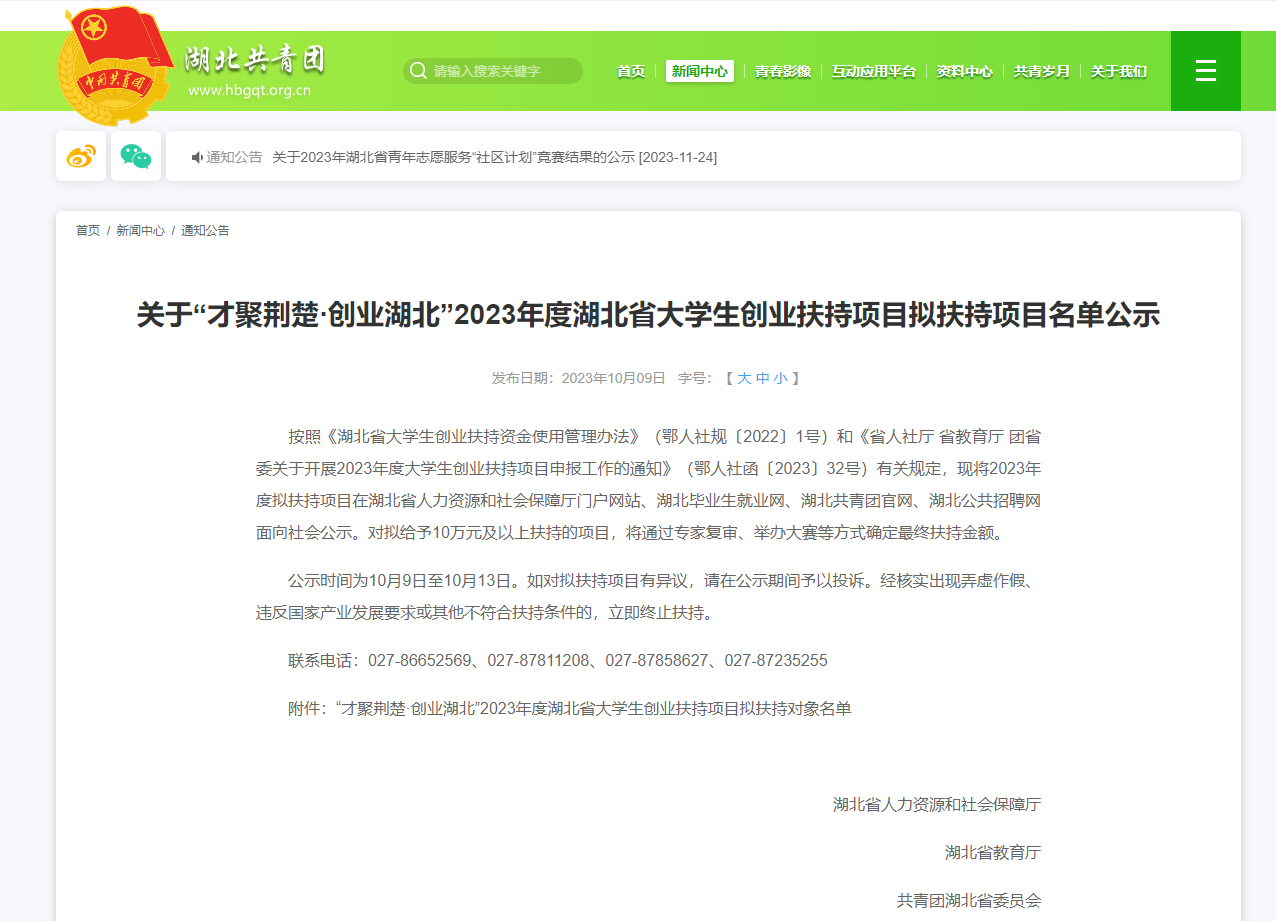 本网讯(通讯员 向珅玓 刘洵 文/图)为深入推进“大众创业、万众创新”,实施“才聚荆楚”工程,鼓励和扶持更多大学生在鄂创新创业,根据《湖北省大学生创业扶持资金使用管理办法》《省人社厅 省教育厅团省委关于开展2023年度大学生创业扶持项目申报工作的通知》的相关规定,经过项目申报、项目审查、项目核查、专家评审等环节,电信工程学院2021级计算机应用技术(中外合作办学)专业学生陈家栋的项目从全省10万余项大学生创业项目中脱颖而出,获批5万元创业资金扶持。