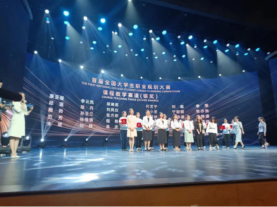 大赛启动以来,我校精心组建了参赛团队,职能部门和学院紧密协作,以省赛第一名成绩进入国赛。后经过材料网评,从150支教学团队中脱颖而出,进入总决赛。现场比赛环节,朱珺副教授从课程性质与定位、课程目标、课程教师团队、课程内容、课程资源、课程的建设与改革、课程的特色与创新、课程的考核与评价八个方面对我校《大学生职业生涯规划与就业指导》课程的建设情况展开阐述,并进行了现场答辩和模拟教学。教学团队的综合表现获得专家评委一致认可,最终以小组第4名斩获银奖。