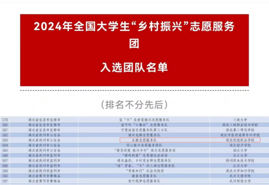 本网讯(通讯员 雷楹 肖莉山 文/图)5月28日,中国农业发展银行、团中央青年志愿者行动指导中心联合发布了《关于遴选2024年全国大学生“乡村振兴”志愿服务团的公告》,我校经济贸易学院头雁志愿服务队成功入选。