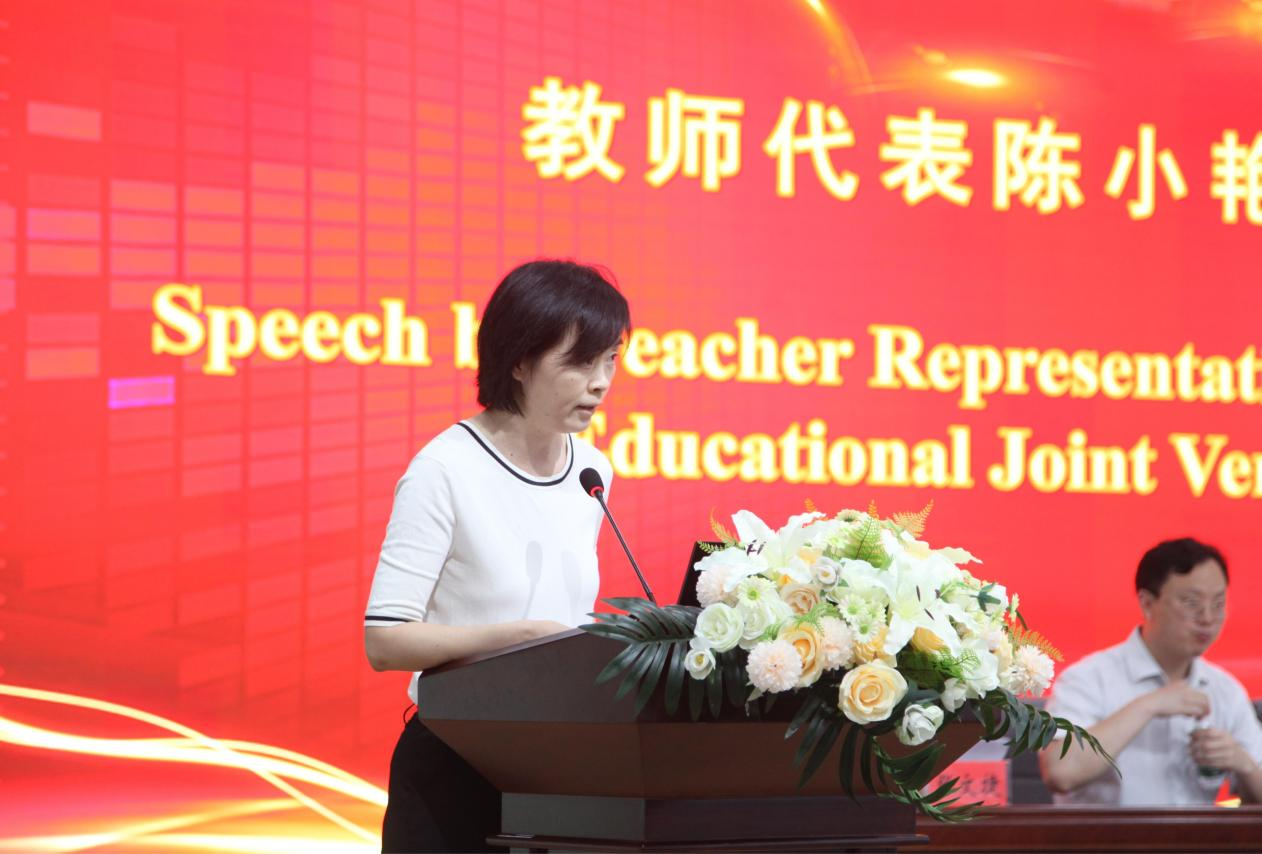 中加合作办学项目教师代表陈小艳副教授发言。她肯定了同学们卓越的学习成果,感谢荷兰学院的鼎力支持与紧密合作。同时,她勉励同学们在未来的道路上,运用所思所学,创新实践、创造价值、迈向未来;保持好奇心,不断学习、不断适应、不断超越。