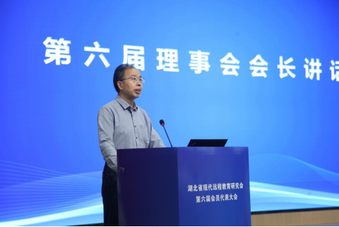 新一届理事会会长汤春来发表履职讲话。他表示,要团结理事会同仁,认真倾听会员的呼声,以会员为中心,以服务为宗旨,充分利用一切有利因素,为全面提升研究会的知名度和美誉度而不懈努力。他提出湖北省现代远程教育研究会的发展,一是坚持办会宗旨,把握研究方向,为教育改革服务,为教育实践服务,为领导决策服务,为地方经济社会发展服务;二是深化调查研究,提升能力水平,为我省教育数字化又好又快发展提供理论支撑;三是营造协作氛围,聚焦研究主业,为远程教育研究、终身教育研究赋能助力;四是积极建言献策,产出优质成果,为我省现代远程教育事业注入新的发展活力、增添新的发展动能。