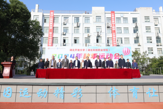 本网讯(通讯员 韩希锦/文 刘捷 李贺刚 大学生记者:蔡迪嘉恒 何梦欢 王容 徐恒垚 张舒凯 方靖 孙熔 武琪雯/图)金秋十月,微风不燥,阳光正好。10月23日至24日,我校2024年秋季运动会在关山校区举办。此次运动会的主题为:运动,让我们更快乐。党委书记钟毓宁,校长陈志祥,党委副书记何平,副校长宋移安、汤春来,纪委书记、监察专员丁华涛,党委常委李宜兵及各单位、各部门主要负责人出席运动会开幕式。