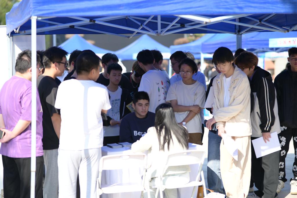 本网讯(通讯员 俞运龙/文 刘捷 大学生记者:方靖 蔡迪嘉恒/图)为持续促进我校毕业生高质量充分就业,10月31日下午,学校2025届毕业生大型校园招聘会机电工程学院专场在关山校区图书馆广场顺利举行。