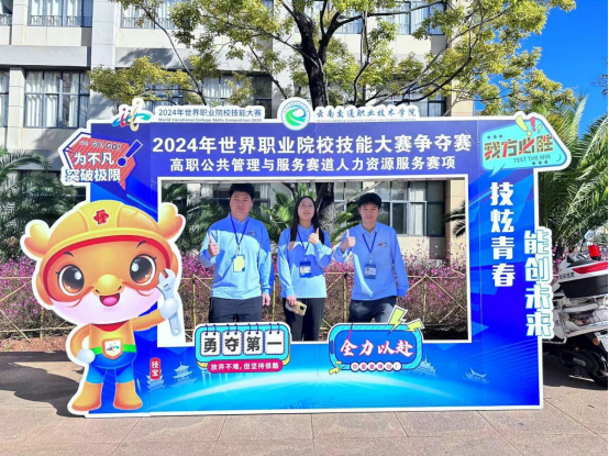 本网讯(通讯员 农珑 杨晶/文 杨晶 汪子琪/图)10月25日至27日, 2024年世界职业院校技能大赛争夺赛公共管理与服务赛道“人力资源服务”赛项在云南交通职业技术学院举办。来自全国30个省、自治区、直辖市的58支队伍219名选手参加比赛,经过两天的激烈角逐,我校工商管理学院教师杨晶、张姝指导的人力资源管理专业的学生团队孙彬彬、黄海源、李靖凭借出色的表现荣获银奖。