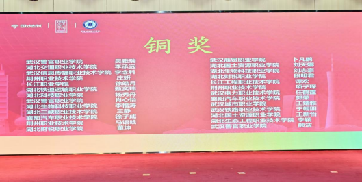 本网讯(通讯员 陈玲/文 张超 刘珍/图)11月6日至7日,“外研社·国才杯”“理解当代中国”全国大学生外语能力大赛湖北赛区演讲比赛在武汉城市职业学院落下帷幕。来自全省45所兄弟院校的134名选手同台竞技,经过两轮激烈比拼,我校参赛选手以出色的表现斩获2金1铜:2023级电子商务4班洪巧儿和2022级市场营销2班陈安妮分别以决赛第三名和第五名的佳绩荣获金奖,2023级大数据与财务管理1班的杨秀丹喜获铜奖。洪巧儿将代表湖北省参加12月份的全国总决赛。