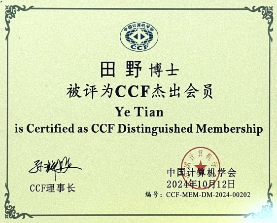 本网讯(通讯员 柯维/文 田野/图)近日,我校软件工程学院田野博士在2024年度中国计算机学会(CCF)会员评选中当选为CCF杰出会员(Distinguished Member),该荣誉授予长期以来对CCF发展做出突出贡献的CCF会员。