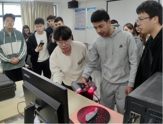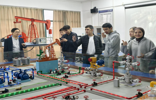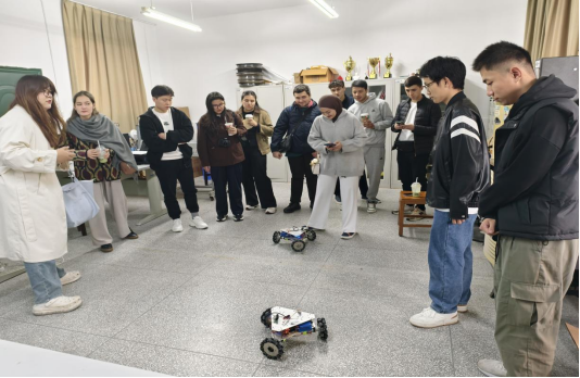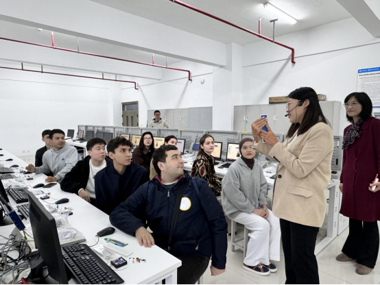 在人工智能学院,国际学生参观了鲲鹏产业学院文化长廊,了解人工智能技术的强大魅力和广泛应用前景,大家积极提问,并纷纷驻足拍照留念,现场气氛热烈。在软件工程学院,他们体验了“智能楼道灯”的模拟小制作,在老师的指导下亲手将电子元件插入面板,成功制作了光控开关,无不感叹科技创新的神奇与魅力。在机电工程学院,他们亲自操作机器人,体验逆向扫描、电工接线、工业机器人操控,参观智能产线,感受石油钻井采油技术。他们表示,这些体验活动拓宽了他们的科技视野,感受到了在中国智能制造技术的广泛应用和深远影响。机电工程学院的老师和同学,还为国际学生展示了古琴和武术,为活动增添了一抹亮色。