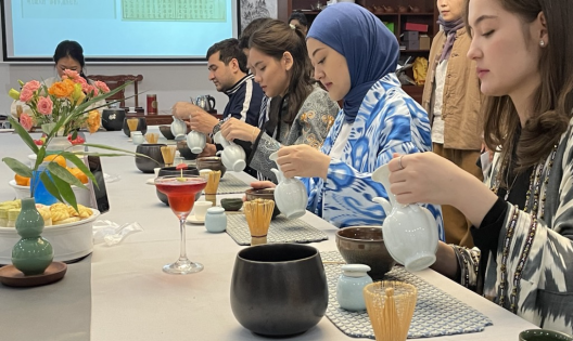 本网讯(通讯员 高杨舒/文 刘超 熊小艳 杨凡 陈蔚 肖倩 雷楹 常凯源 肖莉山/图)11月16日至22日,为进一步深化与“一带一路”沿线国家之间的教育文化互鉴,增进中外学子之间的交流和沟通,让国际学生亲身体验中国的独特魅力与文化精髓,我校举办了为期一周的中亚国际学生文化体验营。来自乌兹别克斯坦、塔吉克斯坦的10名国际学生,走进各学院与大学生活动中心,体验人工智能与智能制造科技,感受茶艺、书法、武术、蓝染等传统文化,参观校外实践教学基地湖北省博物馆等著名景点,与我校学子共同触摸中国的科技与文化脉搏,共同描绘跨国界的友谊与智慧结晶。