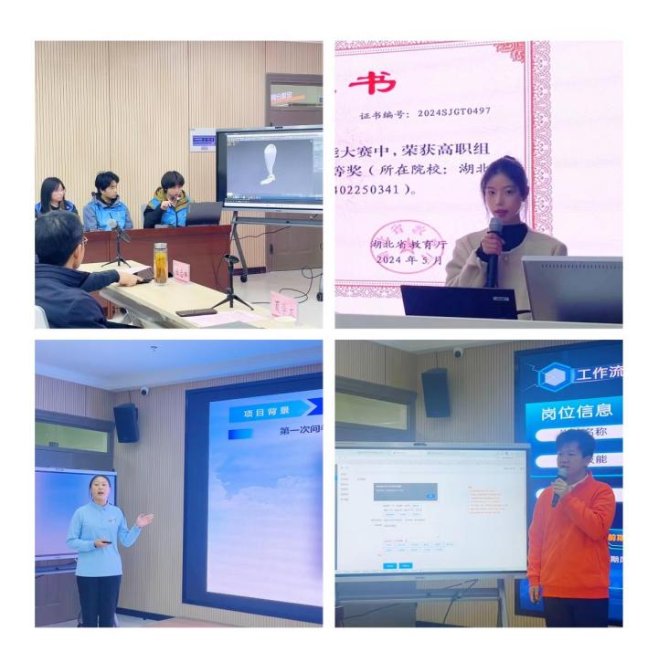 参赛学生代表通过经验交流与现场展示的形式展现各自赛项的特点与亮点。他们把真实的赛场环境搬到总结交流现场,熟练的技能展示、流畅的项目讲解和专业的职场精神展现出我校学子的赛场风范与职业素养。学生代表发言掷地有声,不谈比赛艰辛只谈赛场收获,谈学院老师关怀备至、谈学院领导谆谆教诲,谈学校各方大力支持,让他们有机会有实力站上国家级赛事领奖台。学生们表示他们将怀揣这份荣誉砥砺前行,继续影响和带动更多同学精进技能水平,传承工匠精神。