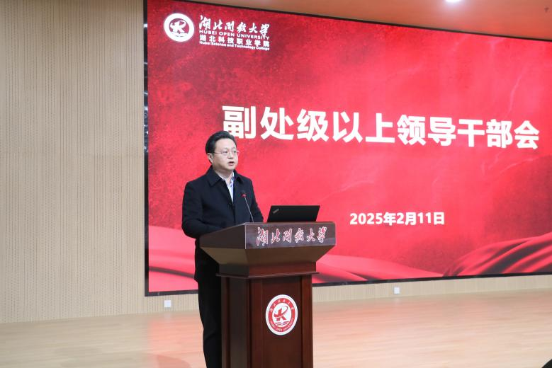 钟毓宁作总结讲话,他强调,2025年是学校深化改革的关键之年,全校干部师生要以“湖北独树一帜”的境界格局和“依托体系,内挖潜力,外借巧力,服务全局”的视野,把握大势,开拓创新,团结奋进,加快学校高质量发展步伐。他从改革、融合、增效三个维度提出要求:一是以深化改革激活发展新动能,在开放大学综合改革、内部管理体制机制等重点领域取得突破性进展;二是以多元融合拓展发展新路径,推进党建与业务、开放教育与职业教育、数字技术与教育场景深度融合;三是以提质增效实现发展上台阶,推动人才培养质量、管理效能和办学效益、优质教育供给的合理增长。他指出,学校正处于转型攻坚期、改革关键期和发展机遇期,全校上下要以深化改革为动力,以多元融合为路径,以提质增效为目标,坚定信心、砥砺前行,奋进新的发展周期,创造新的辉煌成就。