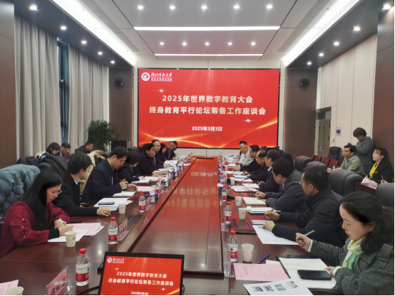 会谈结束后进行了2025年世界数字教育大会终身教育平行论坛筹备工作座谈会。范贤睿介绍了教育部和国家开放大学推进世界数字教育大会的初步方案,教育厅相关处室领导介绍了湖北省推进世界数字教育大会特别是终身教育平行论坛的初步设想,与会人员围绕筹备工作进行了深入交流。