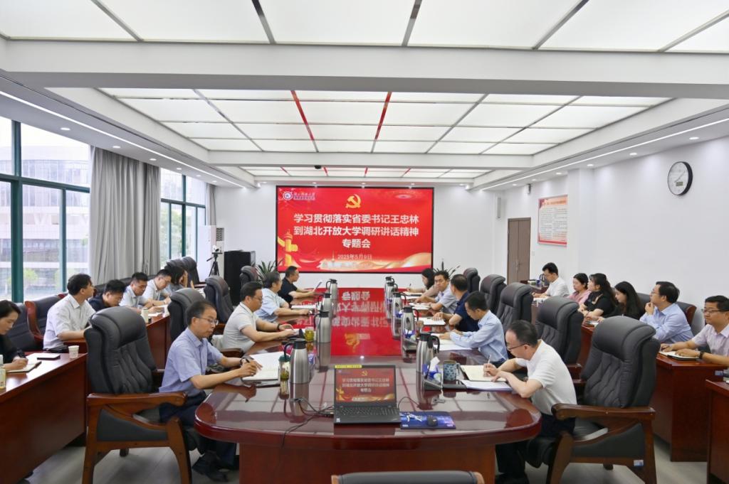 【编者按】5月7日上午,湖北省委书记、省人大常委会主任王忠林到湖北开放大学调研数智赋能终身教育工作,听取2025世界数字教育大会筹备工作情况汇报。他强调,要深入贯彻落实习近平总书记关于教育的重要论述和考察湖北重要讲话精神,坚持正确办学方向,以开放理念办好开放大学,扎实推进数智赋能开放教育,在服务全民终身学习和学习型社会建设中发挥更大作用。要认真细致做好现场观摩各项准备工作,服务大会精彩举办。连日来,省委书记王忠林的讲话在校内引发热烈反响。