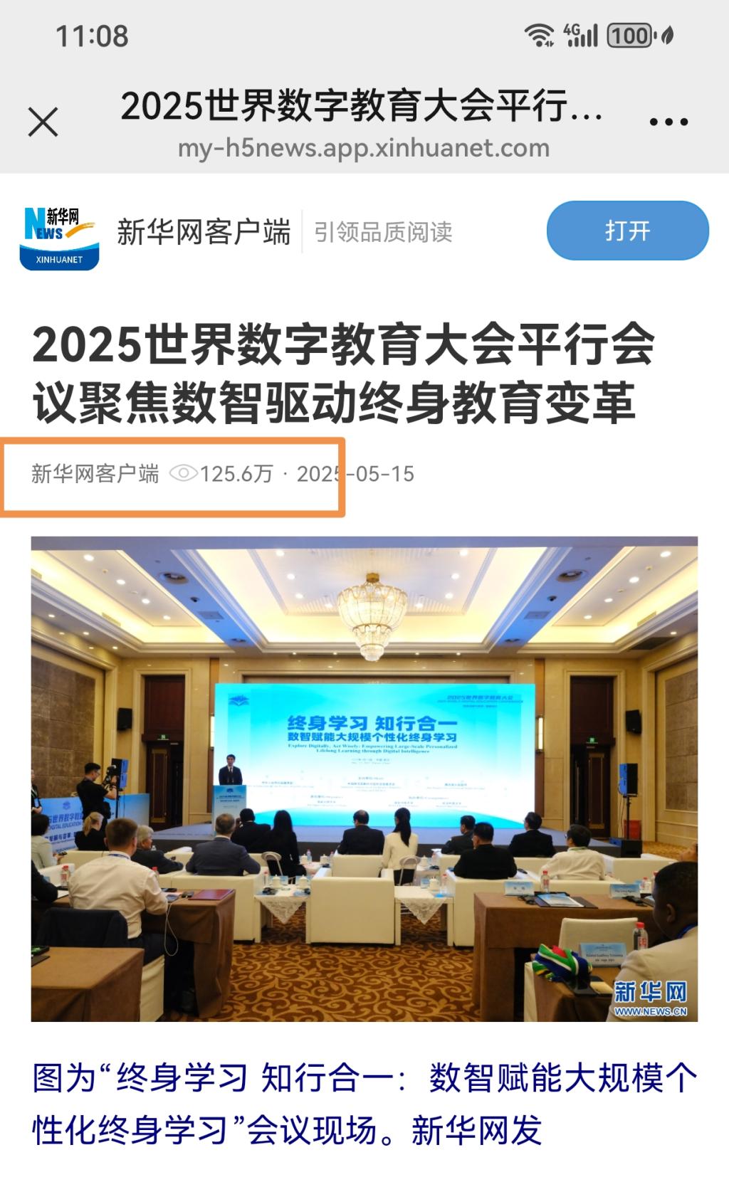 2025世界数字教育大会期间,湖北开放大学作为终身教育现场观摩点和“数智赋能大规模个性化终身学习”平行会议承办方,充分展示教育数字化办学成果,积极推动教育数字化转型理念的广泛传播,努力为教育创新提供可资借鉴的开大实践样本,得到了各级媒体高度关注并广泛报道,基本形成全网全媒体联动矩阵和全域全流程传播矩阵。