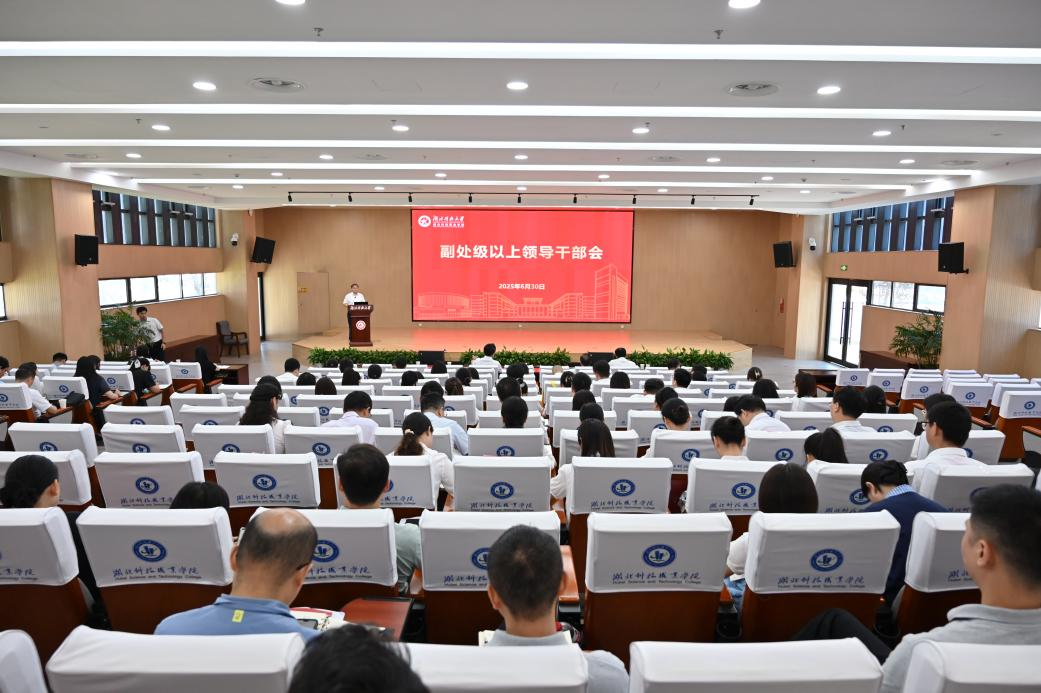 会上,校长陈志祥围绕“党建引领凝聚发展合力、融合发展激发改革动能、教学科研彰显师生风采”总结了“重大任务迎来新突破、三教协同开创新局面、各类项目实现新提升”三个方面取得的成绩,并布置了暑假期间的重点工作。他指出,全校各单位(部门)要坚持以上率下,在工作中,主动承担重点难点任务,在推进重大项目时,负责人要亲自挂帅,带领团队攻坚突破;要压实责任链条,加强重点工作的清单化管理与全过程跟踪,定期开展专项督查与效能评估,强化考核结果运用;要强化协同联动,树立“全校一盘棋” 意识,凝聚起全校上下心往一处想、劲往一处使的攻坚合力,确保各项重点任务在系统推进中取得突破。