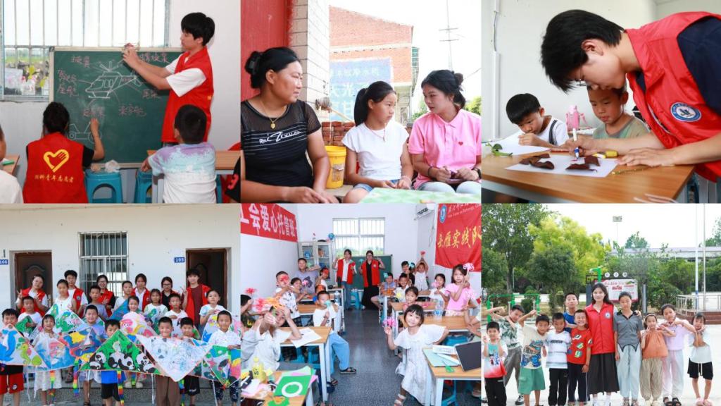 经济贸易学院:爱心托管筑暖巢,头雁飞入百姓家。2025年7月5日至25日,“头雁”实践队赴枣阳市鹿头镇郭营村开办暑期爱心托管班。期间,团队成员为助力乡村儿童全面发展,设计了红色教育、科学教育、绿色环保、安全防护、非遗手工、歌舞绘画等特色课程,深切关注乡村儿童的身心健康、兴趣培养与精神成长,带领孩子们探索更广阔的世界。同时,团队成员积极开展家访活动,与家长交流孩子表现、倾听期望需求,对需要帮助的孩子进行耐心引导、提供心理支持。家长称,爱心托管班让孩子收获知识,更感受到社会关爱和志愿者老师的暖心陪伴。三年接力,从“老师好”到“明年见”,队员们用实际行动在乡村振兴画卷上描绘出青春最亮丽的色彩。