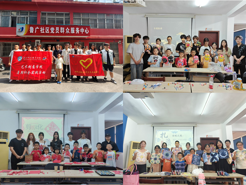 艺术创意学院:非遗传习进社区,传统文化润童心。2025年7月7日, “区微里”大学生志愿服务队22名师生前往武汉市洪山区卓刀泉街道鲁广社区开展七彩假期非遗体验周暨爱心托管活动。期间,志愿服务队将在校所学的非遗技艺与社会实践相结合,在社区开设非遗趣工坊,讲解武汉剪纸、手工螺钿、扎染、脸谱制作、传统泥塑、手工团扇等非遗技艺的历史和发展,并进行现场教学,小朋友们在玩转非遗中体会和感悟非遗技艺和优秀传统文化之美,让文化滋润童心,进一步激发了非遗文化的活力与生命力;举办爱心托管班,为社区的小朋友们开设课业辅导、安全知识小科普、动画电影赏析等课程,帮助小朋友们度过充实和快乐的暑假。