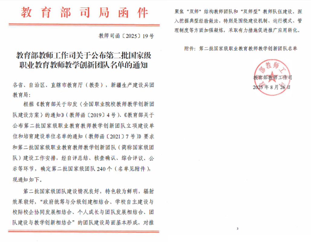 此次成功通过国家级教学创新团队认定,既是对我校教学改革成果的充分肯定,也是对团队建设成效的高度认可。展望未来,工业机器人技术专业教学团队将继续深化教学创新,充分发挥示范引领作用,为培养更多优秀技术技能人才作出新的贡献。