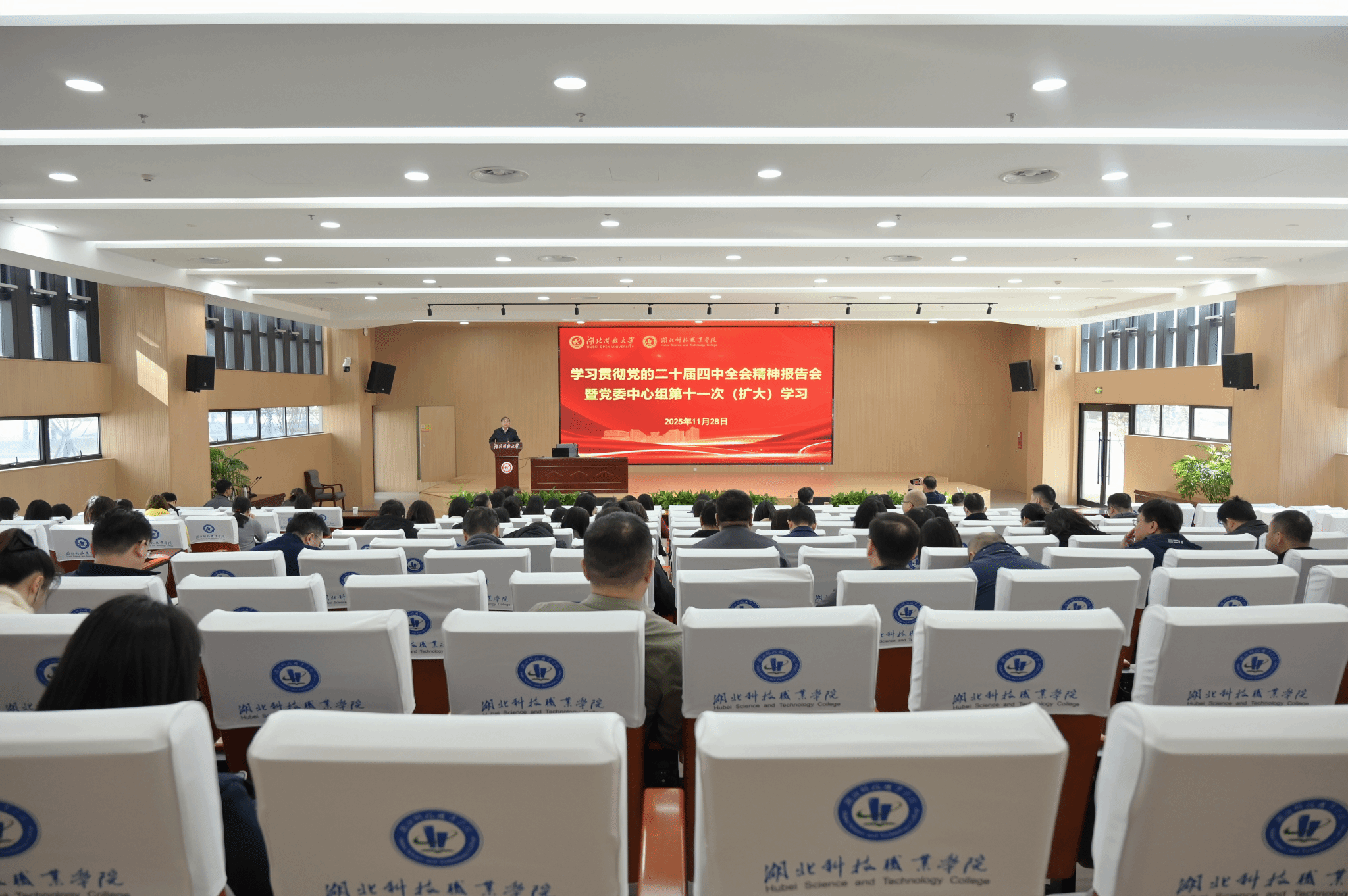 本网讯(通讯员 刘捷/文 徐敏/图)11月28日上午,湖北省委宣讲团成员、中共湖北省委党校吕伟副教授来校作学习贯彻党的二十届四中全会精神专题辅导报告。全体校领导出席会议,副处级以上领导干部、马克思主义学院全体教师、部分学生代表参加学习,党委书记钟毓宁主持会议。
