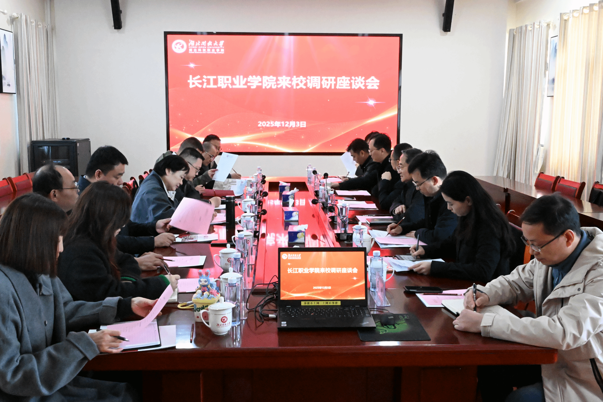 本网讯(通讯员 王欣/文 李贺刚/图)12月3日上午,长江职业学院党委书记童静菊一行来我校调研交流。校党委书记钟毓宁、党委副书记何平陪同调研并出席座谈会。