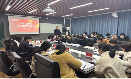 本网讯(通讯员 刘雪琴/文 向珅玓/图)2月23日下午,我校电信工程学院第一届教职工代表大会第三次会议顺利召开,学院全体教职工代表参会。会议由学院党总支书记、分工会主席谢永平主持。