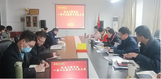 本网讯(通讯员 余延俐 文/图)2月24日,机电工程召开学院一届四次教代会暨全体教职工大会。学院全体教职工代表参加了会议,会议由学院党总支书记、分工会主席赵清泉主持。