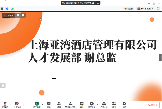 本网讯(通讯员 杨国丽/文 唐依婷/图)3月10日晚,工商管理学院酒店管理专业协会通过腾讯会议平台召开了优秀毕业生和实习生经验分享会。学院院长苏枫、上海亚湾酒店管理有限公司人才发展部总监谢珊、武汉泛海费尔蒙酒礼宾部刘经理、武汉光谷凯悦酒店人力资源部培训经理王经理、三名2020级优秀实习生以及2018届优秀毕业生上海静安洲际酒店大堂吧经理王宝、2016届优秀毕业生武汉光谷万豪酒店财务部采购主管唐晶、2022年专升本成功上岸武汉商学院李雨欣以及酒店管理专业协会指导老师、辅导员参加会议。