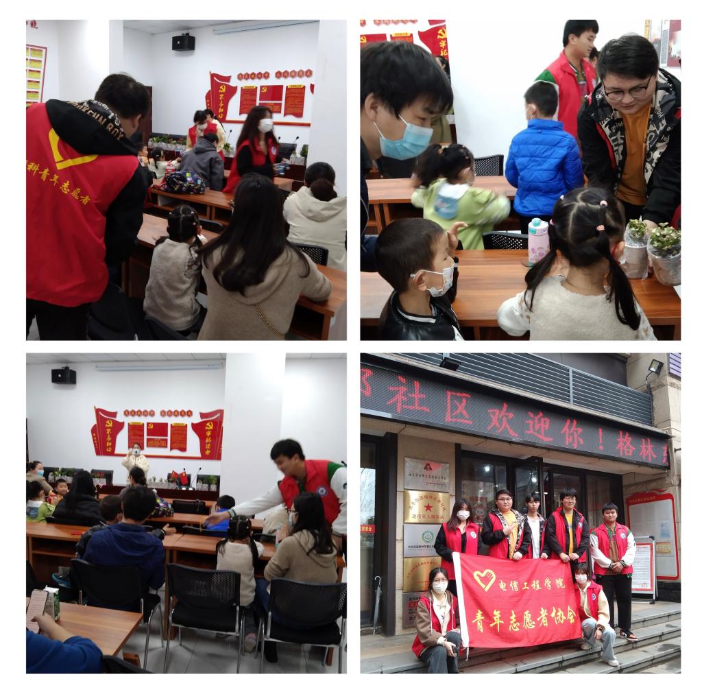 本网讯(通讯员 苏恒瑞 文/图)为进一步发挥学生党员、学生干部的先锋模范作用,为群众办实事好事,秉持“共创美好家园”的美丽愿景,以“共建共治共享”社区综合治理为依托,电信工程学院“大手拉小手”志愿服务队与结对的金地格林东郡社区开展为期两个月的“春天正好,向未来出发”的结对共建志愿服务活动。