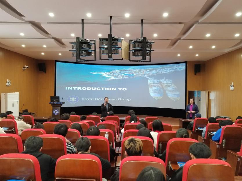 在交流座谈会上,苏枫代表学院对雷小梅表示热烈欢迎,并从学院国际邮轮乘务管理专业建设成果、学生实习就业、师资队伍等方面进行了介绍。雷小梅介绍了天津海运职业学院邮轮旅游系皇家加勒比游轮国际邮轮人才培训中心的建设情况,向学生们详细讲解了皇家加勒比游轮公司发展概况、企业文化、招聘计划、岗位职责与素质要求、该培训中心提供的培训内容等,现场回答了学生提出的问题。