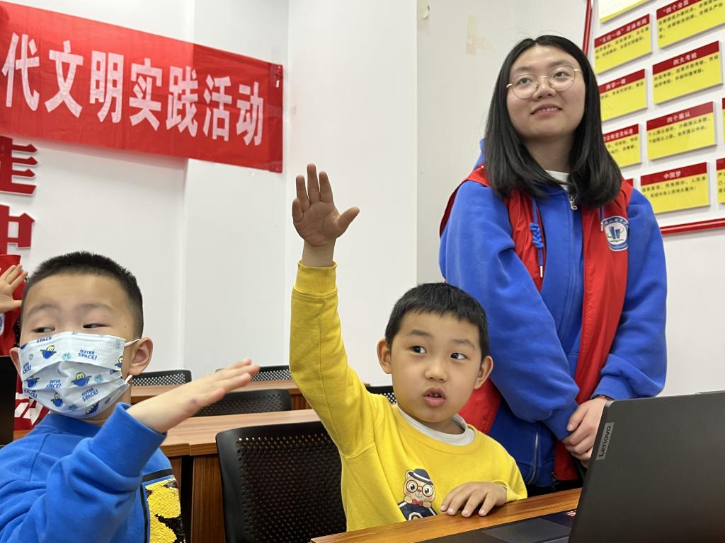 本网讯(通讯员 苏恒瑞 文/图)“哇!这个课程太有意思了,太神奇了。”“苏老师,我想每天都上编程课。”在金地格林东郡社区的“四点半”课堂上,来自社区的20余名小朋友兴致盎然,满心欢喜,电信工程学院“雏鹰计划”课后服务志愿团队的大学生们正在给社区的的适龄儿童上编程课。4月2日起,电信工程学院正式开启为期2个月的“我是小小程序员”青少年编程公益班系列教学活动。