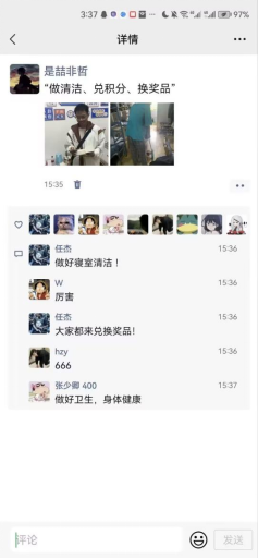 该活动是学校开展的文明寝室创建系列活动之一,目的是推进爱国卫生运动,推进宿舍定期打扫清洁,培养学生爱劳动、讲卫生的好习惯,在常规的查寝督促的基础上,用奖励的形式,充分调动同学们做好卫生的积极性,进一步提升寝室清洁卫生管理成效。活动开展一个月来,学生寝室的清洁卫生情况有了进一步的改善,许多寝室打扫的很干净,氛围很温馨,每一张上传的照片都体现出了同学们的认真和努力。