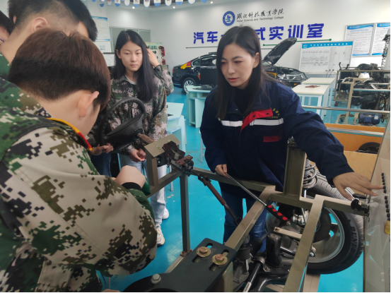 本网讯(通讯员 程夏静 文/图)“从基础技艺练起,为汽车强国梦贡献力量。”4月20日,湖北省技术能手李丹老师在学校汽车一站式实训室《汽车电控底盘构造与维修》课堂上,为学生们介绍了习近平总书记4月12日到广汽埃安新能源汽车股份有限公司考察的新闻。